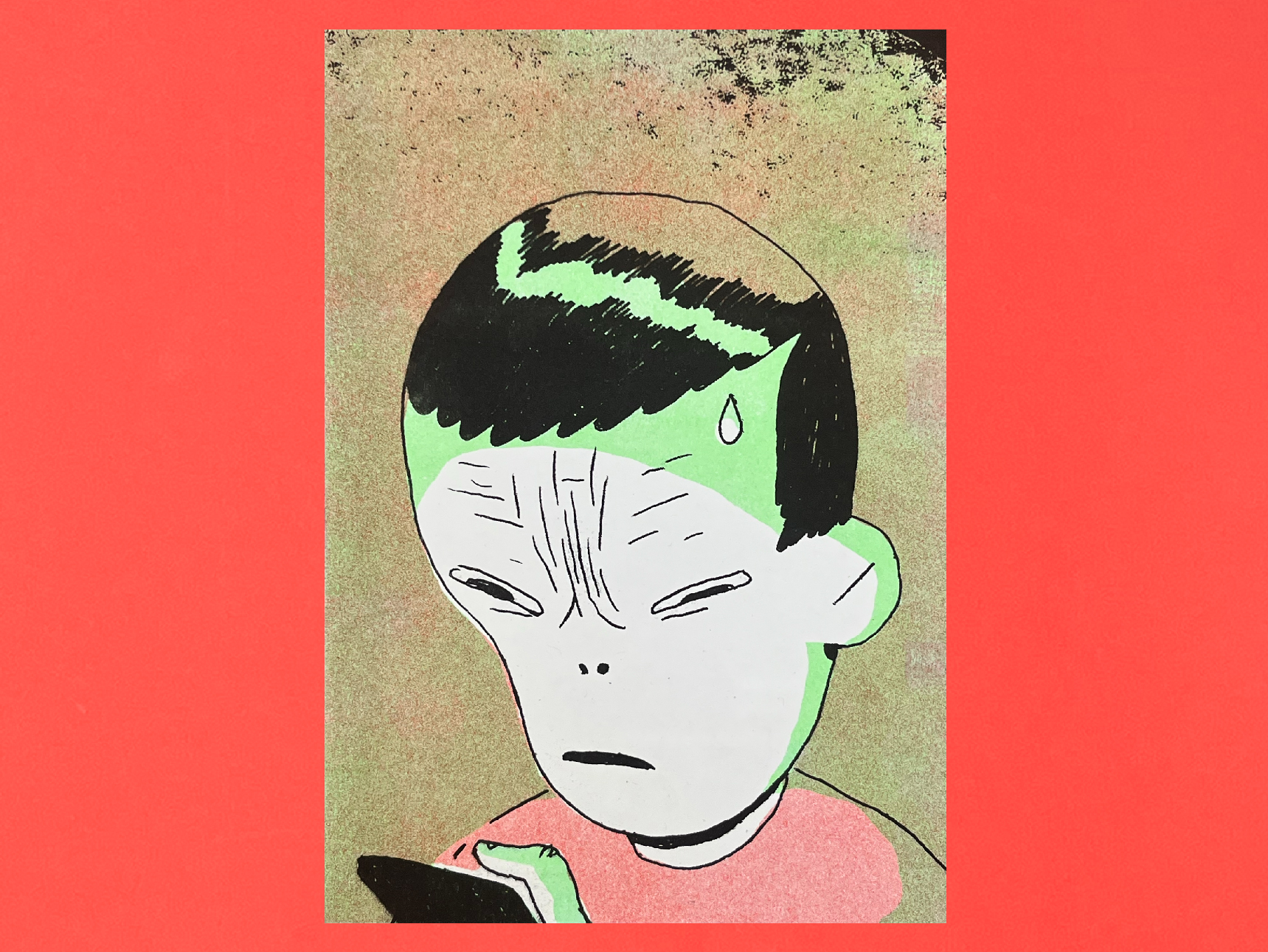 Impresión riso en verde flúor, rojo y negro